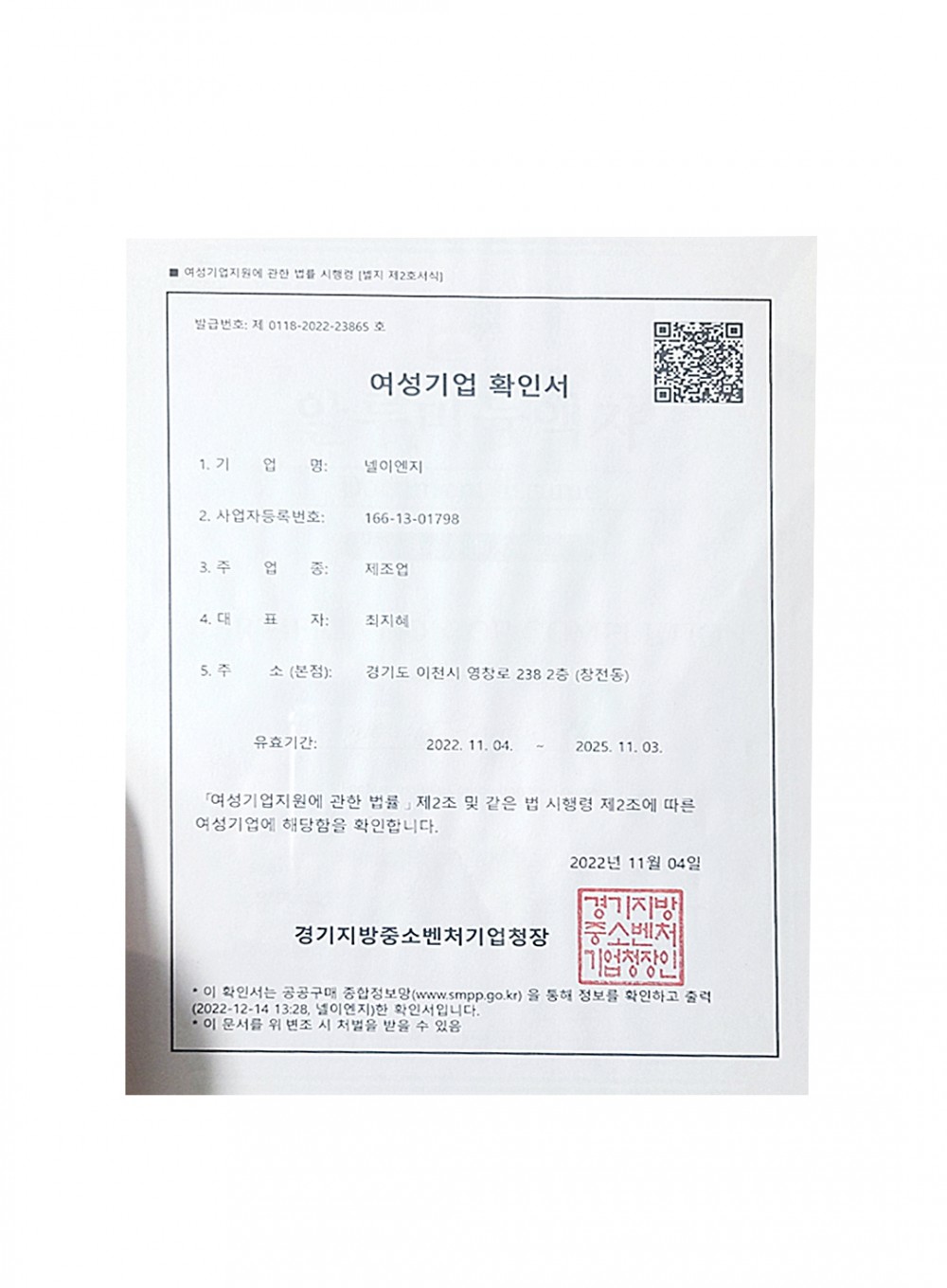NE넬이엔지 | 인증서